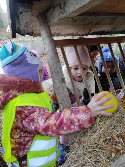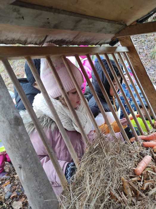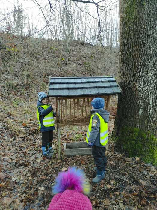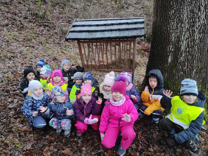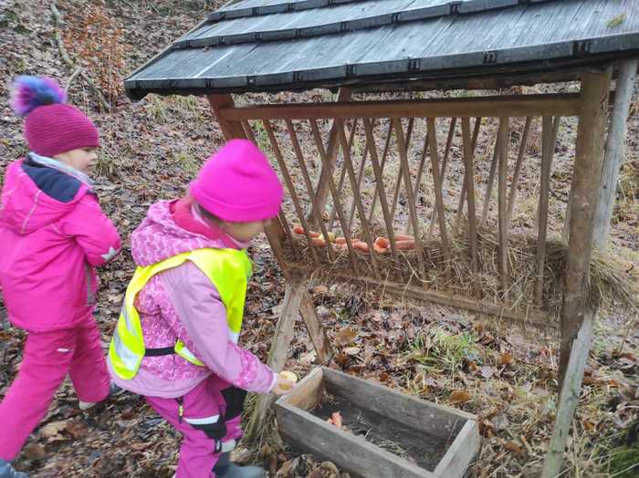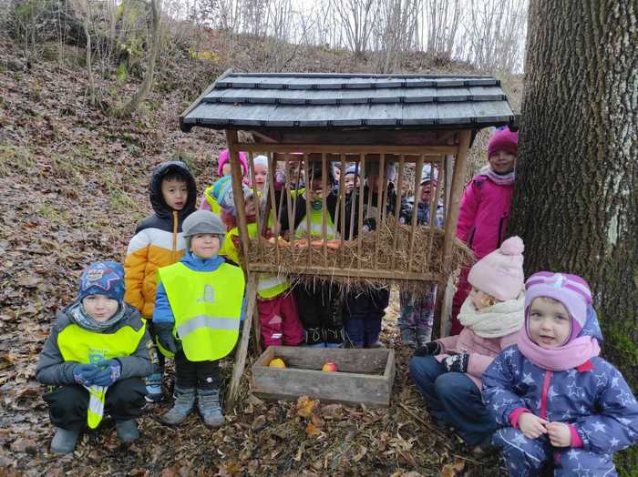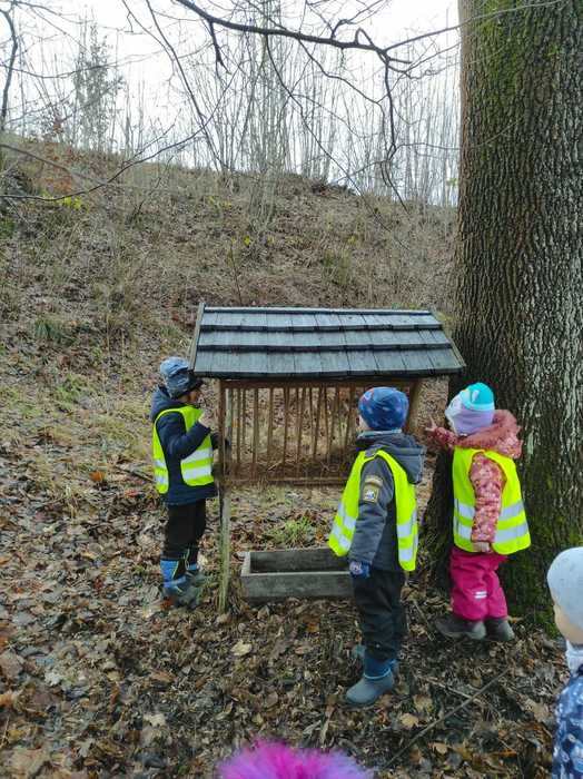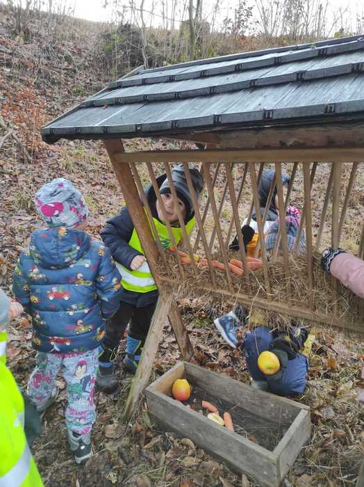Děti ze školky daly zvířátkům ke krmelci vánoční nadílku.