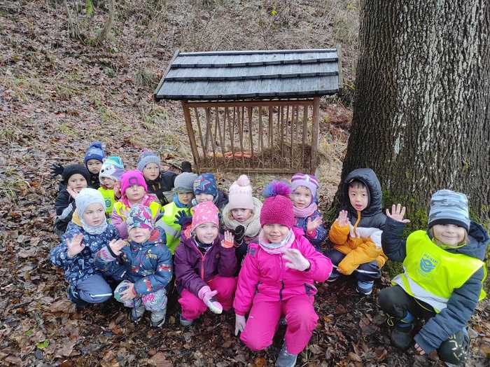 Děti ze školky daly zvířátkům ke krmelci vánoční nadílku