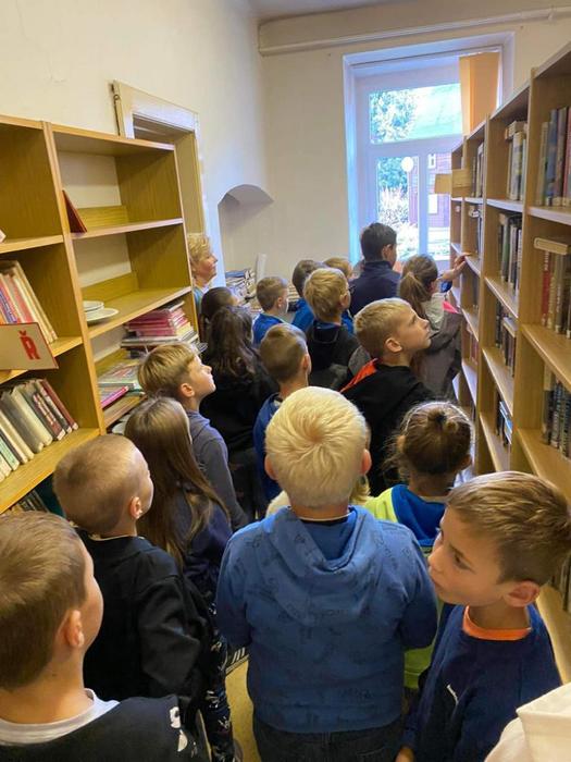 Děti z 2. a 4. ročníku dnes navštívily místní knihovnu ve Chřibské.